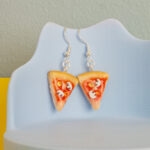 Ett par perfekta pizzaslice-örhängen med både tomatsås, ost, champinjoner och kristaller.