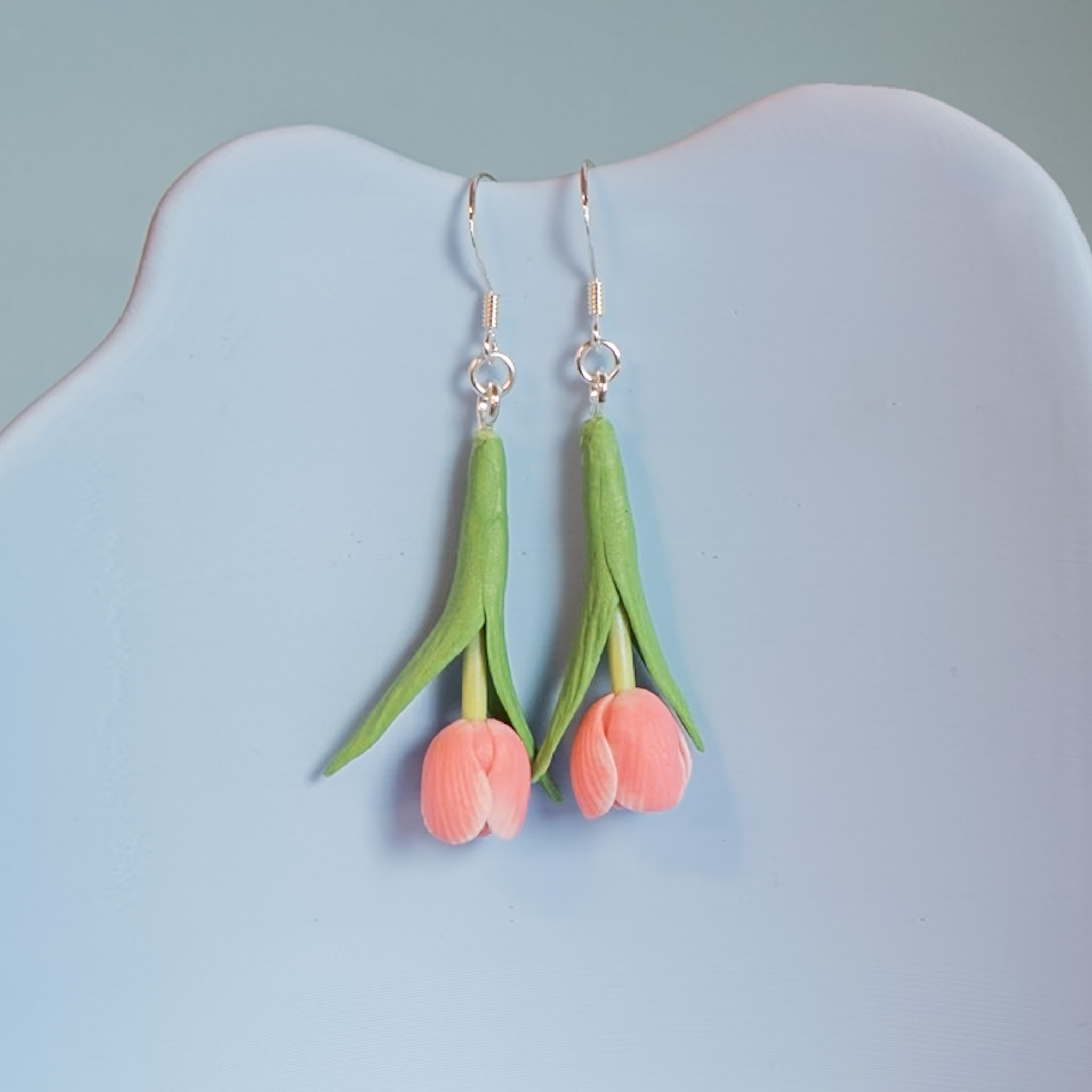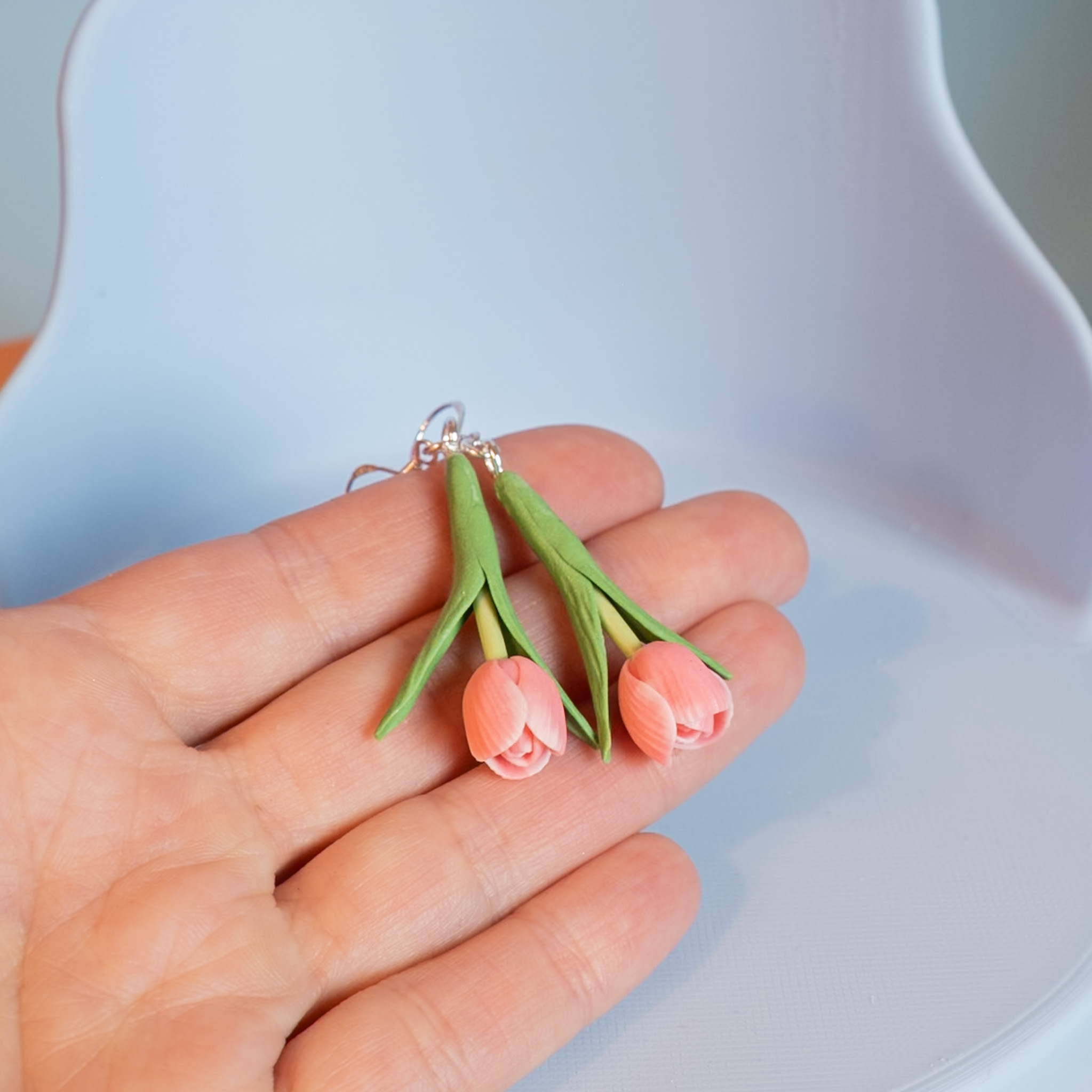 Otroligt vackra och verklighetstrogna tulpaner i en ljus rosa nyans. Örhängena säljes i par!